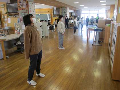「門出の言葉」の練習がスタートしました!先日は、各教室の前で距離を取り、窓の方に向かって声を出しました。早く体育館で思い切り声を出し、学年のみんなで練習できたらいいなと思います。