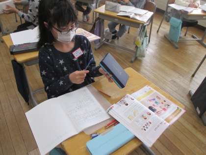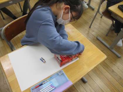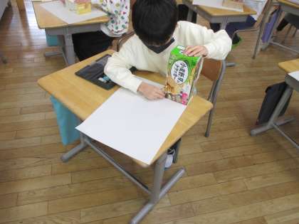 今日は、お菓子の箱やティッシュの箱を使って、箱の形の特徴を調べました。頂点、面、辺の数について各自で調べた数を発表し、はこの形の特徴についてみんなで考えました。また全ての面を紙に写し、箱の面の特徴を見付け出す子供たちも。意欲的に学習に取り組むことができました。