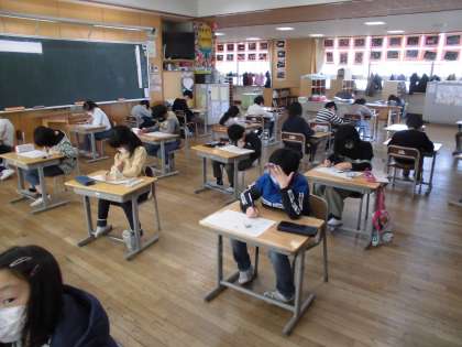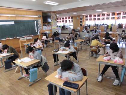 今日は理科の学習のたしかめテストを行いました。子供たちは、問題文をよく読んで、授業で実験したことを思い出しながら解いている様子でした。今日で3年生の学習のたしかめテストは終わりますが、しっかりと3年生で学習したことを振り返り、4年生へとつなげていってほしいと思います。
