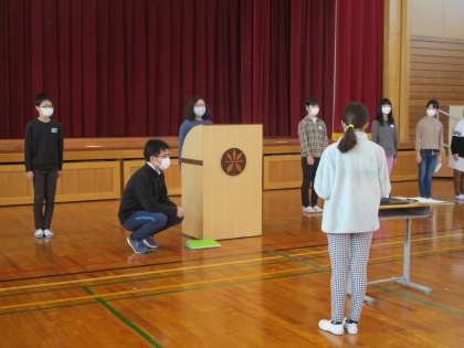1年間、光陽小学校の最高学年として頑張ってきた6年生。今日は、そのバトンを5年生に引き継ぐ日でした。各委員会の委員長と縦割り班の班長から、今年度取り組んできたことや、下級生へのメッセージを伝えました。
