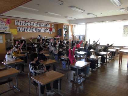 今日は、5年生さんの主催で卒業お祝い集会が開かれました。私たち3年生も、5年生さんが作られたクイズや動画を見ながら、今までお世話になった6年生との思い出を振り返りました。