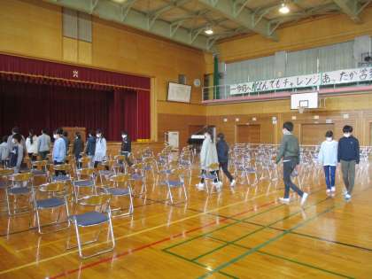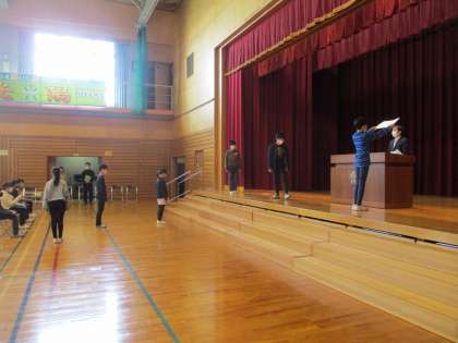 来週の月曜日は予行練習です。今週は、入退場や卒業証書授与、門出の言葉の練習を短い時間で集中して取り組むことができました。練習に参加する態度から、卒業式に向けての意識が高まっていることが伝わってきます。