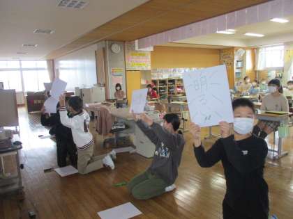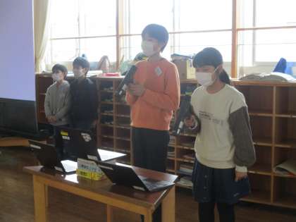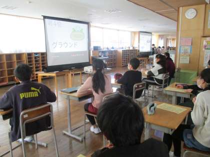 総合的な学習の時間に絆プロジェクトのメンバーが準備を進めてきた「心を1つに協力!笑顔あふれる最高集会」を行いました。各教室で、密を避けて楽しむことはできないかと考え、工夫凝らし「意思疎通ゲーム」「思い出クイズ」「思い出ビンゴ」を行いました。6年間の思い出を振り返りながら、仲間と楽しい時間を過ごすことができました。