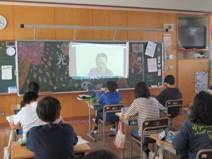 富山の素敵な所、夢を叶えるために努力したこと等、子供たちの気になる質問一つ一つに柴田さんが丁寧に答えてくださいました。動画を見て、子供たちも笑顔になっていました。