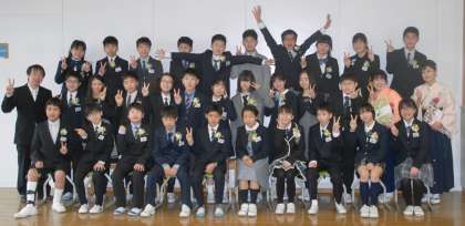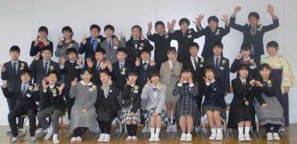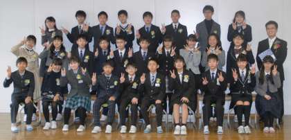 本日の様子を写真でお伝えします。まずは、登校後、クラスごとに撮影した最後の集合写真です。みんないい笑顔です♪