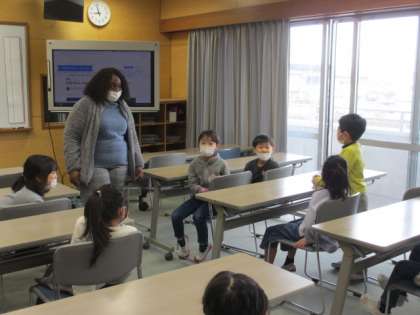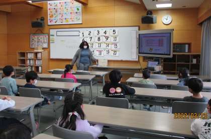 今日は、1年生が外国語活動を体験できる日でした。初めての外国語の授業に子供たちは大盛り上がりでした。タミーカ先生の出身ジャマイカについて知ったり、英語で数字を言う練習をしたりしました。英語でのビンゴゲームもあり、「楽しかった」「はやく外国語の授業をしたい」と意欲的な子供たちでした。