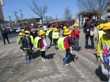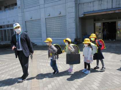 1年生が集団下校しました。玄関前の広場「にこにこさわやか広場」通称「にこさわ広場」に集まってきました。しばらくすると、上手に整列し、元気に帰って行きました。来週も元気に登校してください。
