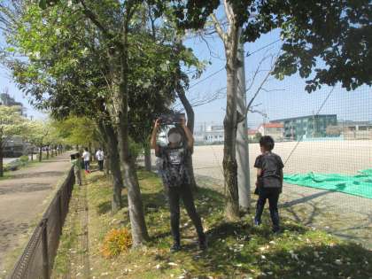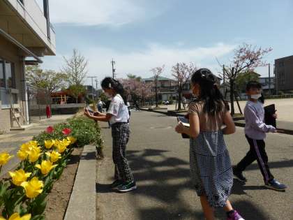 学校の周りにはどんな春の生き物が見られるか、観察に行きました。