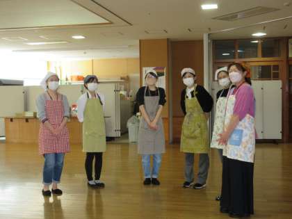 4月11日(月)のことです。1年生は、この日から給食がスタートしました。教室では、担任の先生と一緒に、配膳の練習をしていました。お盆をもったポーズで、動きをシミュレーション中です。教室付近では、お手伝い役のPTAの皆さんがスタンバイ!おいしくて安全な給食は、こうして始まったのでした。