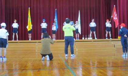結団式を行いました。写真は、司会やあいさつの様子です。今日の結団式に向けて、練習してきたことを発揮し一生懸命取り組んでいました。
