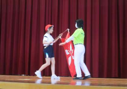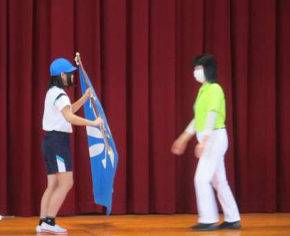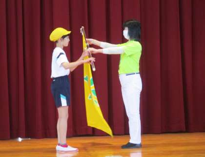 校長先生から、各団の団長が団旗を受け取っています。6年生が中心となり団員をまとめて、光陽小学校の運動会をつくっていってくれることを期待しています!