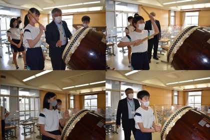 今日ののびのびタイムには、各団の太鼓担当が音楽室で特別レッスンを受けました。