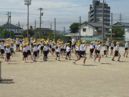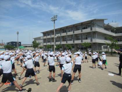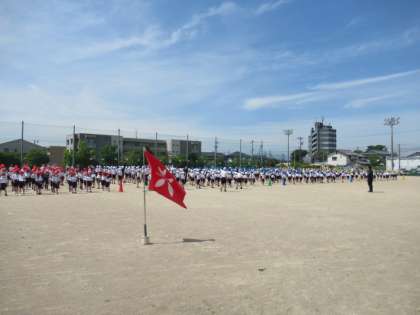 まずは整列の仕方について確認、その後は団ごとに分かれて応援練習をしました。どの団もリーダーが前に出てはきはきとした指示を出し、下級生もリーダーから刺激を受けて真剣に参加することができました。