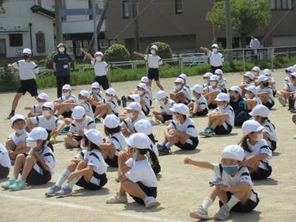 今日は運動会の全体練習を行いました。暑さ指数(WBGT)を確認し、熱中症予報も「ほぼ安全」、さあ、短時間に集中してがんばろう!6年生は今まで考えてきた応援内容を下学年に伝えて、真剣に練習に励みました。フレーフレー、光陽っ子!!