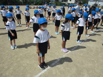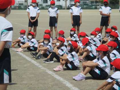 今日は初めて応援合戦の練習をしました。6年生の指示をよく聞いて練習に参加していました。暑い中、よく頑張りました!