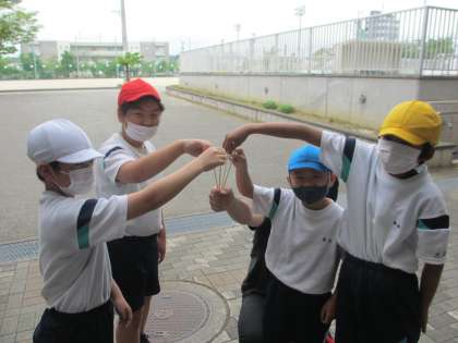 それぞれの団の代表がくじを引き、綱引き予選の対戦相手を決めました。