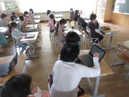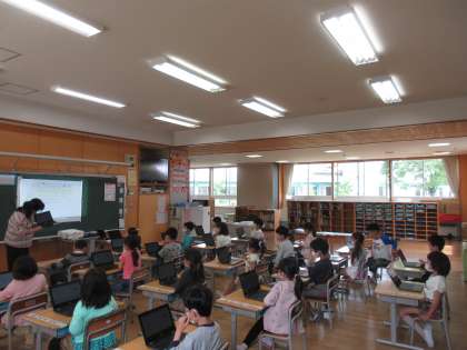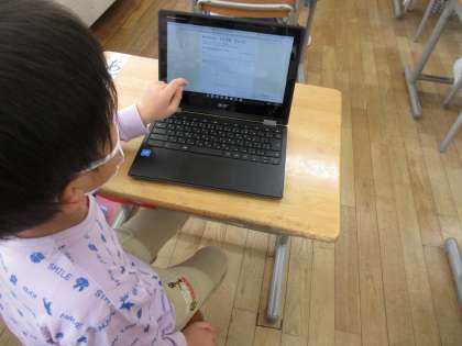1年生の子供たちも、いよいよ一人一台端末を使い始めました。