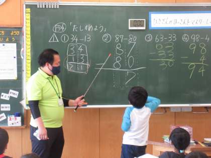 ひき算の筆算名人になろうとがんばっている子供たち。今日は、いろいろな練習問題に取り組みました。
