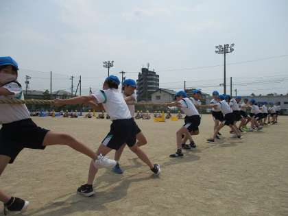 綱引き、青団と黄団の様子です!!