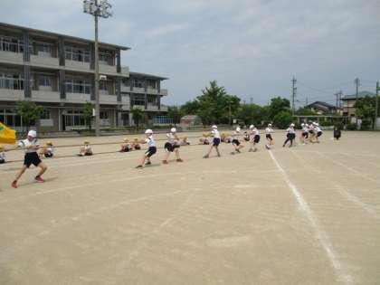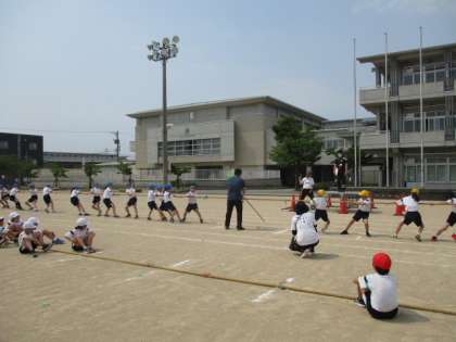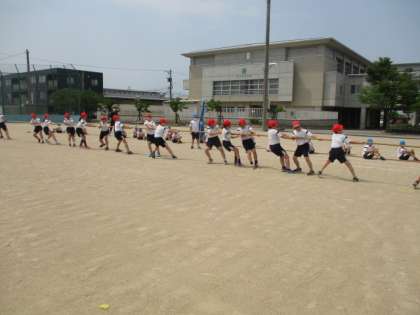 綱引きの予選を行いました。縄を思い切り引っ張り、がんばりました。