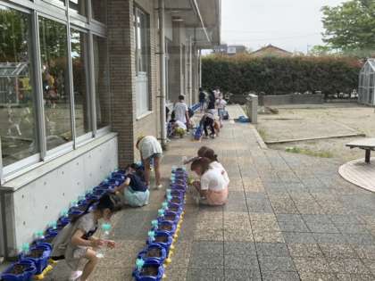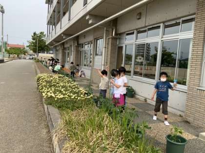 2年生は野菜のお世話、1年生はあさがおのお世話を頑張っています。毎朝向き合うたびに少しずつ大きくなっている様子に子供たちの表情もニッコリです。