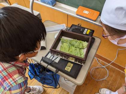 昨年末に学校でもキャベツを植えていたのですが、今年はモンシロチョウの音沙汰はゼロ。色々な方に探していただいて、今、蛹が2匹、3年生フロアーにいます。初めて見る子供たちもおり、「苦手だったけど、かわいい」と言いながら見ていました。