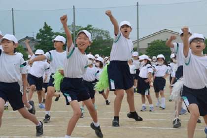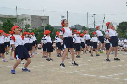 赤団と白団の応援合戦の様子です。応援優勝を目指して全力で頑張っています。