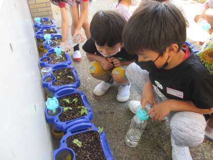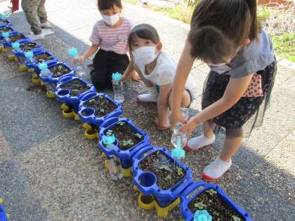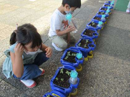 今朝、あさがおの水やりに行くと、たくさん芽が出ていました!大切にお世話をしているので、みんな喜んでいました。これからの成長が楽しみですね!
