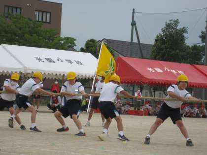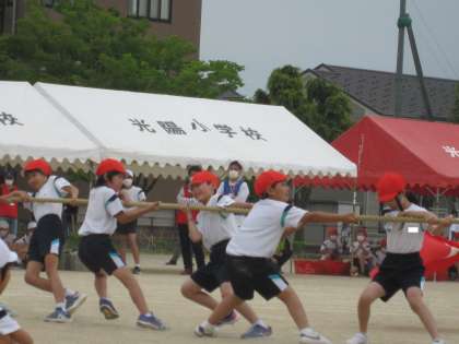 運動会の団体競技は、綱引きでした。3位決定戦の様子です。「対戦相手に負けないぞ」という気持ちがどの団からも伝わってきました。