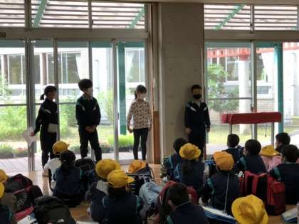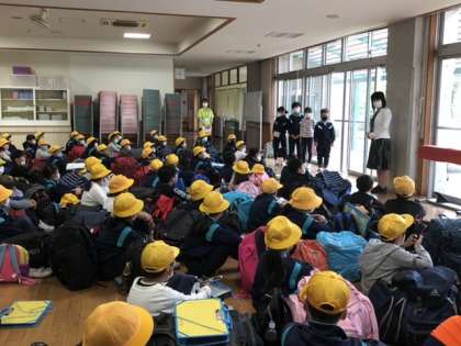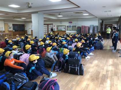 1泊2日で呉羽青少年自然の家に出かけます。子供たちがしっかりと出発式の進行をしています。代表の挨拶もとても立派でした。