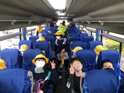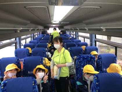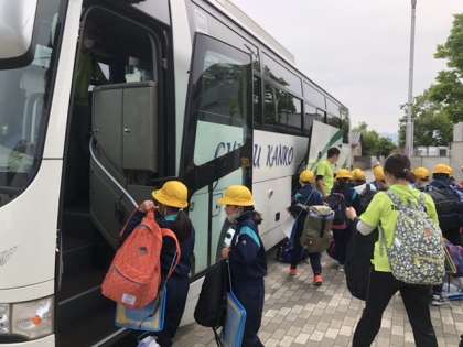 バスに乗り、いよいよ出発します。久しぶりのお泊まり学習、楽しみですね。