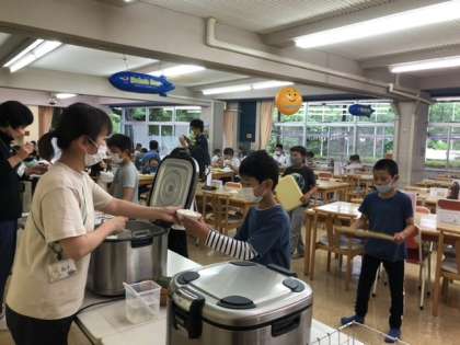 まず食事リーダーがご飯や味噌汁を配膳します。