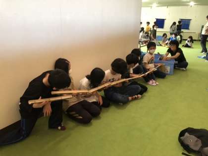 竹を素材とした遊びやゲームを楽しみました。遊びは全部で12、ローテーションしながら体験しました。