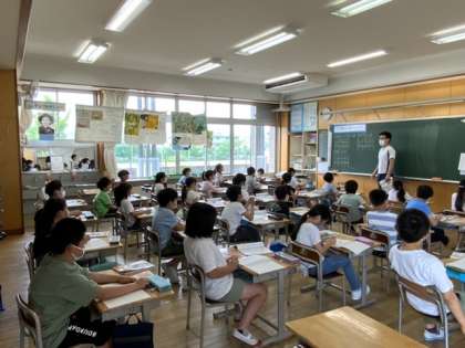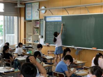 積極的に前に出て解き方を書く子供たち。話の聞き方も上手です。