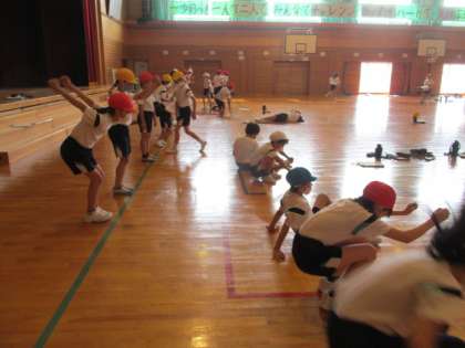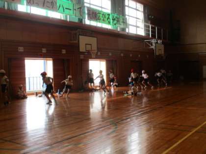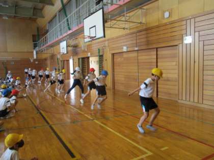 反復横跳びの記録測定と立ち幅跳びの練習を行いました。