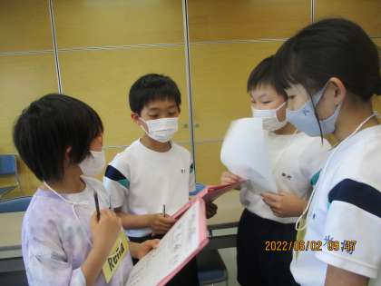 今日の外国語活動では、友達に好きな遊びを聞き、学級で一番人気のある遊びは何か調べました。子供たちは意欲的に質問したり答えたりしました。意欲の高い子供たちです。
