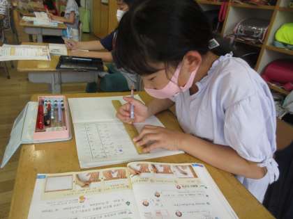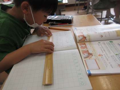 竹ものさしを使って、長さを測ったり直線を引いたりしました。