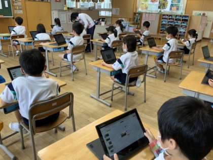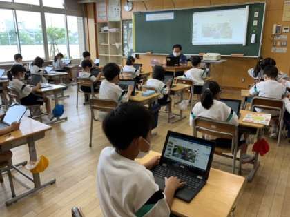 友だちが育てている野菜をクロームブックに書き込んで褒め合いました。外は雨ですが、これがあれば十分に学習を進められます。