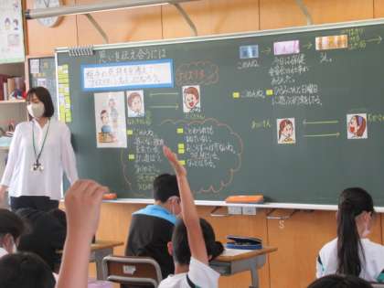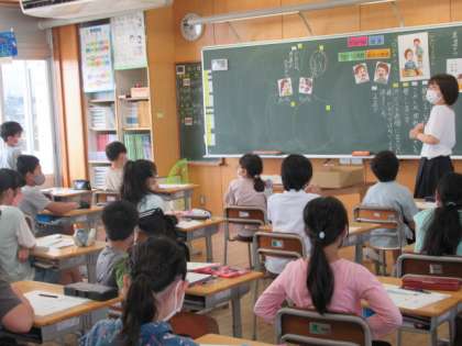 3限の公開の様子です。板書は子供たちの理解の拠り所。それだけに板書計画を立てて教師も授業に臨んでいます。