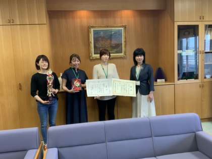 「令和3年度富山県小中学校PTA広報紙コンクール」において、本校PTA広報紙KOYOが最優秀賞を受賞し、その受賞報告に担当された方々が来校されました。PTA広報紙は、学校やPTA活動を広く地域に紹介するとともに、子育てや様々な課題について共に考える際のパイプ役となる重要な資料です。本校PTAの日頃からの積極的な活動ぶりはもちろんのこと、加えて時代の情勢に応じて課題を見付けて広報紙を編集しておられる委員の方々の取組は、本当に素晴らしいと思います。