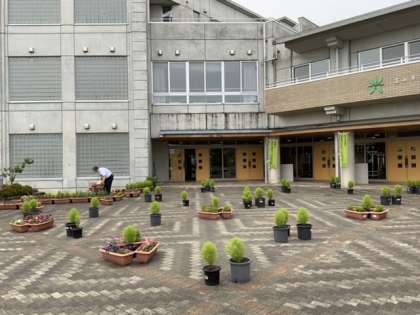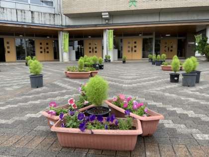 児童玄関前がまた変身しています。より美しく潤いのある環境をつくろうと、担当の先生が朝早くから一工夫してくれています。どんなふうになるのかとても楽しみです。