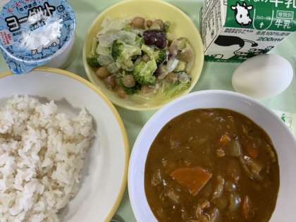 今日は子供たちの大好きなカレーライスの日です。献立は次のとおり。