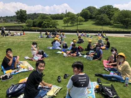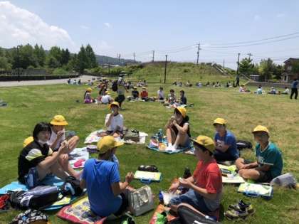 午前の活動を終えて呉羽山の公園に一旦移動しました。自然いっぱいの中で昼食をいただきました。