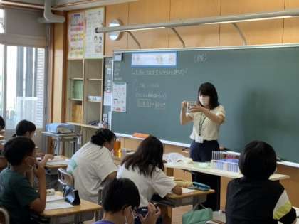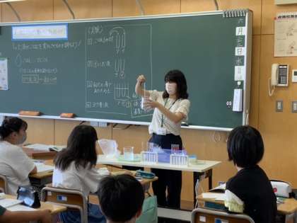 ごはんをもみ出し、だ液を入れて温めます。この後ヨウ素液で確かめます。