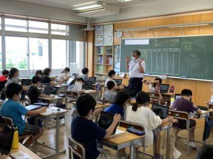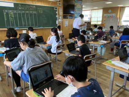 一年間の作業の流れを一覧にしていきます。今日は育苗や代かき等について、クロームブックを使って検索していきました。