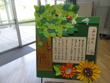 校内の掲示も夏仕様に。 今月の詩は、音読するとよりその楽しさが分かります。