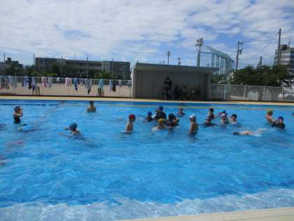子供たちが楽しみにしていたプール学習が始まりました!子供たちは、気持ちよさそうに泳いだり、水遊びをしていました!