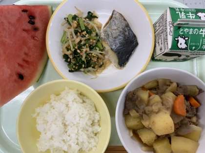 今日のデザートに出ているすいかは、果肉の90%が水分です。すいかの原産地、南アフリカの砂漠地帯では、水の代わりに食べられ、重宝されていました。