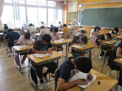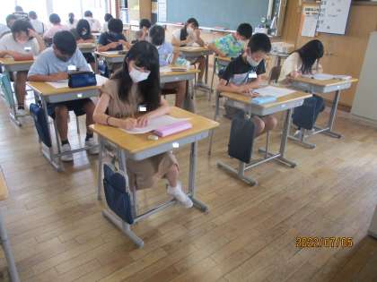 6年生は昨日から、期末テストが始まりました。今日は、社会科のテストでした。集中してテストに取り組んでいます。テストに向けて自主学習も頑張っています。残りの教科も頑張りましょう!!