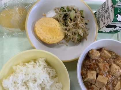 麻婆豆腐は、「畑の肉」と言われる大豆から作られる豆腐を、味噌や調味料と香辛料で味付けしたものです。給食の麻婆豆腐も、唐辛子が入っていますが、辛さは控えてありますので、安心していただくことができます。